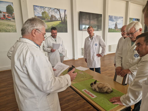 Am 2. August 2025 begrüßte der Gruppenobmann der Preisrichtergruppe Rostock-Schwerin Norbert Bissa alle anwesenden Preisrichterkollegen. Das große Interesse an der Schulung von Exotenrassen, vereinte beide Gruppen.